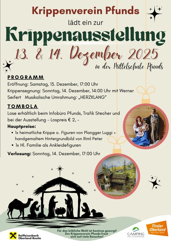 Der Krippenverein Pfunds lädt zur Krippenschau ein. BesucherInnen sind eingeladen liebevoll handgefertigte Krippen,
